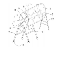 滚筒筛内设置有搅 拌架,搅拌架被支撑架支撑,搅拌架通过搅拌轴与土壤箱外的电机 相连接。 搅拌架上设置有多 个碎土的带状凸起。 入料口处,土壤箱 上设置有一可用于送料的梯子,梯子与土壤箱活动连接。